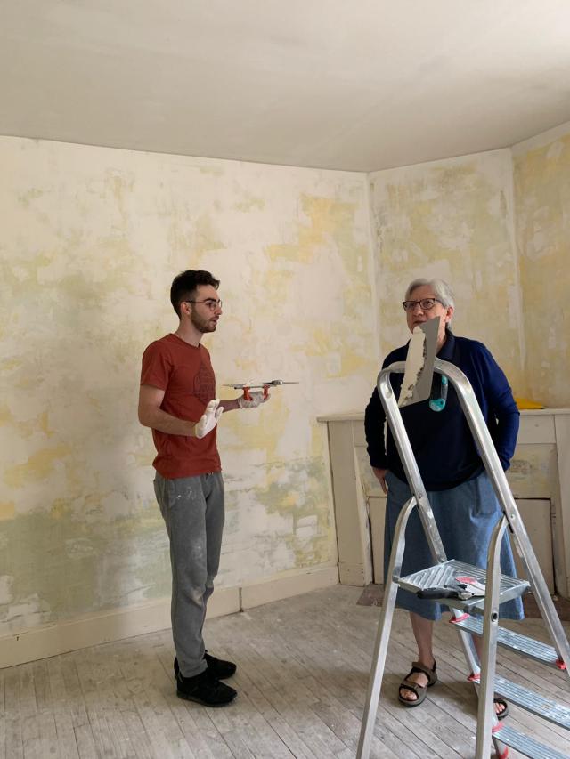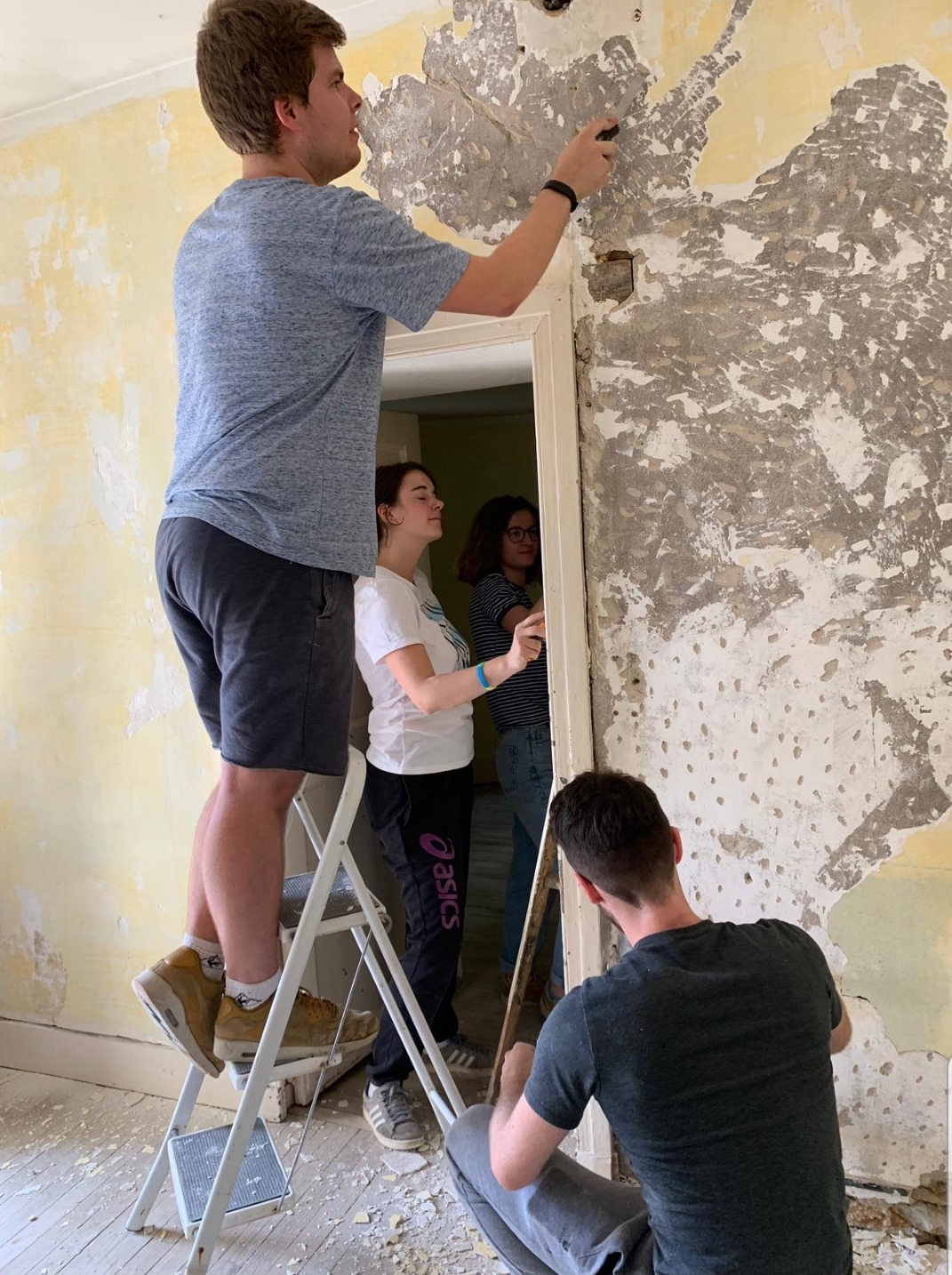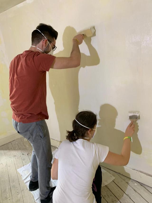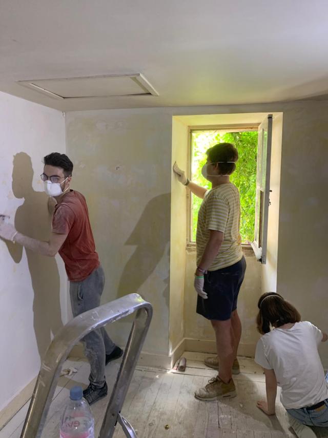Pour le dernier jour d’une partie de l’équipe, nous avons appliqué la dernière couche de peinture dans l’une des salles de la loge. Nous sommes fiers que cette partie soit terminée des plinthes au plafond. Nous avons finalisé l’article à propos de l’association qui sera publié sur le site de la congrégation. En fin de journée nous avons raccompagné celles qui devaient rentrer plus tôt, mais les autres ne manqueront d’avancer les travaux demain !